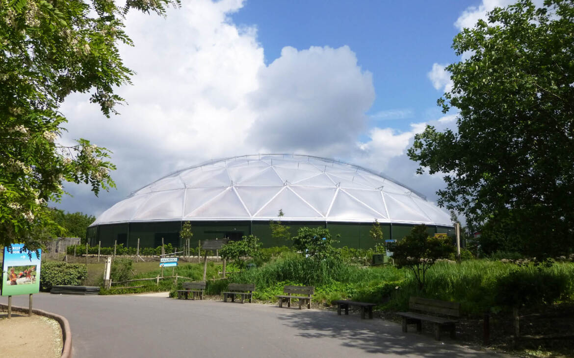 In Diergaarde Blijdorp is een nieuwe attractie gebouwd als onderdeel van een nieuw gebied in de dierentuin met als thema Zuid-Amerika. In het gebouw is een complete natuurlijke biotoop met flora en fauna: een tropisch regenwoud met rivier, reptielen, schildpadden en vlinders. De dakconstructie is uitgevoerd met een geodetische koepel van hout, die is ingevuld met luchtkussens van transparante folie. Hier komen de ruimtelijke en architectonische mogelijkheden van GeoDomeDesign uitstekend tot hun recht.