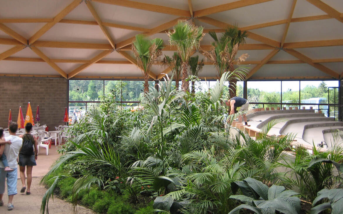Voor het Safaripark 'Monde Sauvage' heeft Arc2 een aantrekkelijk entreepaviljoen ontworpen. Een fraaie houten koepel van 40 meter in doorsnede vormt de blikvanger van het project. In het midden zorgt een transparant stervormig deel voor natuurlijke lichtinval. De dichte delen van de koepel zijn afgewerkt met sandwichpanelen. Het entreepaviljoen biedt ruimte aan horeca met terras, een klein amfitheater en verschillende biotopen met o.a. tropische planten, reptielen en vogels.